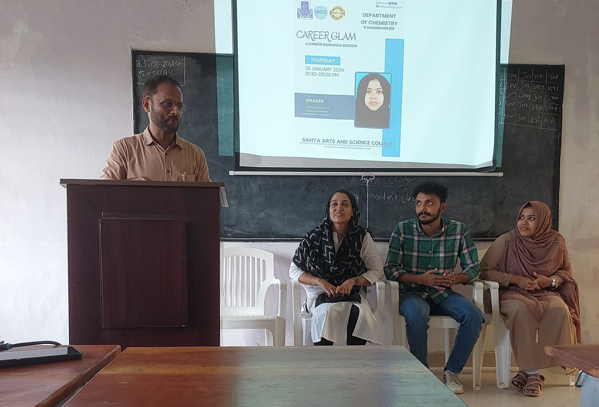 The Career guidance class held on 25-01-2024 at the PG Seminar Hall, was organized by the Department of Chemistry in association with the Internal Quality Assurance Cell (IQAC) of Sahya Arts and Science College. Dr. Abdul Rabbi Nistar, the Principal of Sahya Arts and Science College, inaugurated the event, emphasizing the importance of academic support for aspiring candidates. Ms. Shabnam, the Head of the Chemistry Department, extended a warm welcome, setting a positive tone for the program. Amjad khan, Assistant Professor in the Department of Chemistry, was felicitated for his  contributions.
