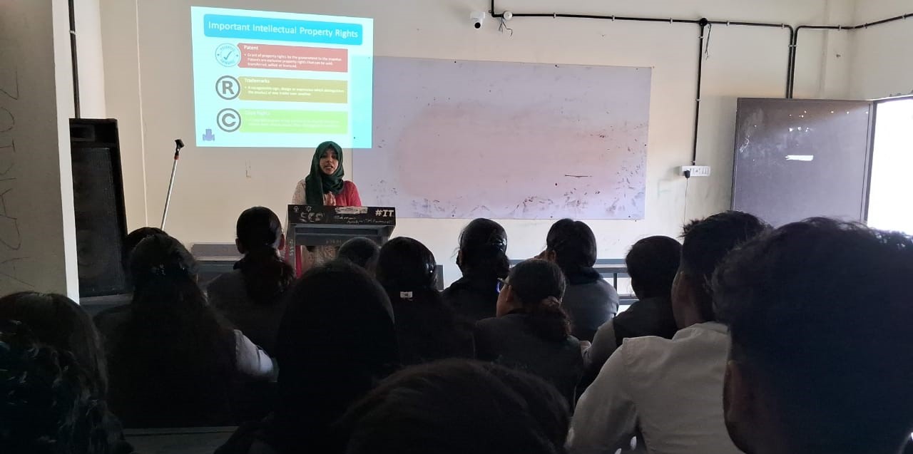 The Department of English, in association with IQAC conducted a workshop on Intellectual Property Rights (IPR) for BA English students on January 22, 2024, at 10.30 am at the college auditorium. The session aimed to provide students with insights into the importance of IPR. The event commenced with a welcome address delivered by Mr. Muhammad Shahin, HOD of English Department. Principal Dr. (Lt.Cdr.) Abdul Rabbi Nistar inaugurated the workshop, highlighting the relevance of understanding Intellectual Property Rights. The keynote address and the workshop was led by Mrs. Afrahath, Asst. Professor on English department focusing on copyrights, trademarks, and their applications. Ms. Neha, Asst. Professor of English felicitated on the workshop. Ms. Rifa Thasni, Secretary of English Association delivered the vote of thanks for their active involvement in making this workshop a valuable and enlightening experience.