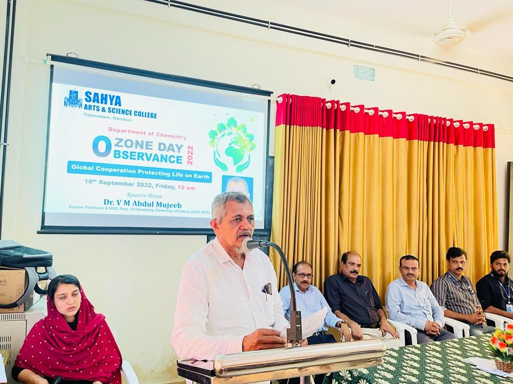 Department of Chemistry conducted Ozone Day Observance 2022.Prof.Dr.V.M. Abdul Mujeeb ,Former Professor and HOD, Dept. Of Chemistry, University of Calicut, was the chief guest. After the inaugural function the resource person Prof. Dr. V. M. Abdul Mujeeb delivered a talk on the Ozone day theme : 'Global Cooperation, Protecting life on Earth'. In this talk he stressed the importance of Ozone layer, the factors which lead to it's depletion and the need of Global Cooperation for the protection of ozone layer.